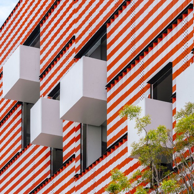 In Miami, like many other USA cities, mobility is mainly based upon cars; therefore, the success of a destination depends on the possibility to park nearby. The designer and curator Terence Riley pursued a generous as well as smart idea: he subdivided the façade into five parts, giving to as many authors (including his studio) the task to create a section of it.