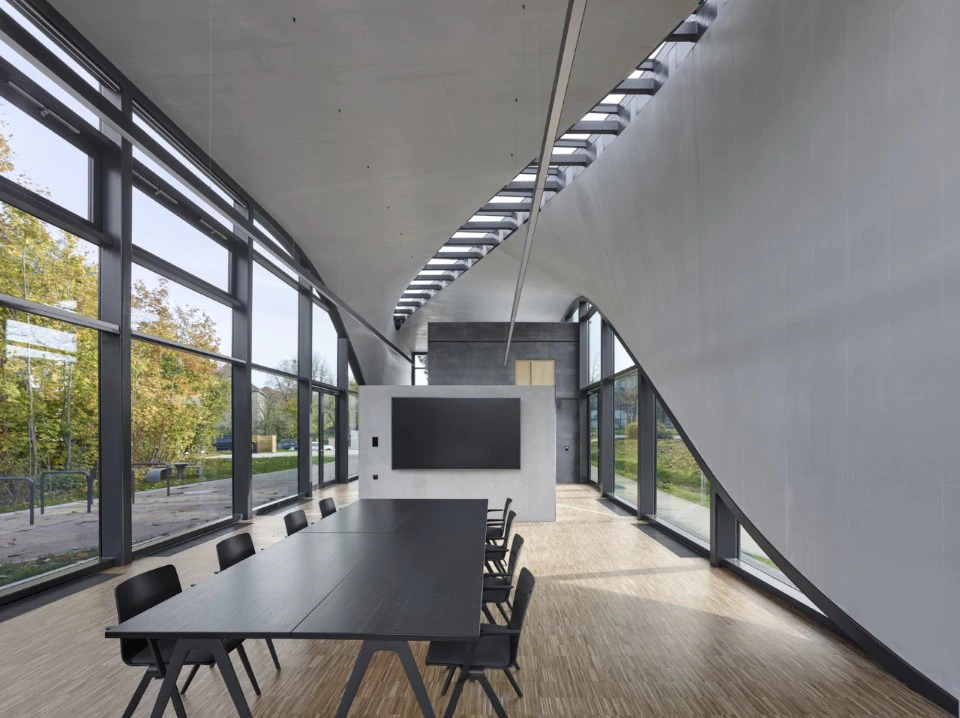 ‘The CUBE’ is the result of a collaboration among Professor Manfred Curbach, his Institute for Solid Construction, at the TU Dresden, and HENN. Its shape recalls the fluid, almost textile nature of carbon fibres, merging walls and ceilings into a continuous form.