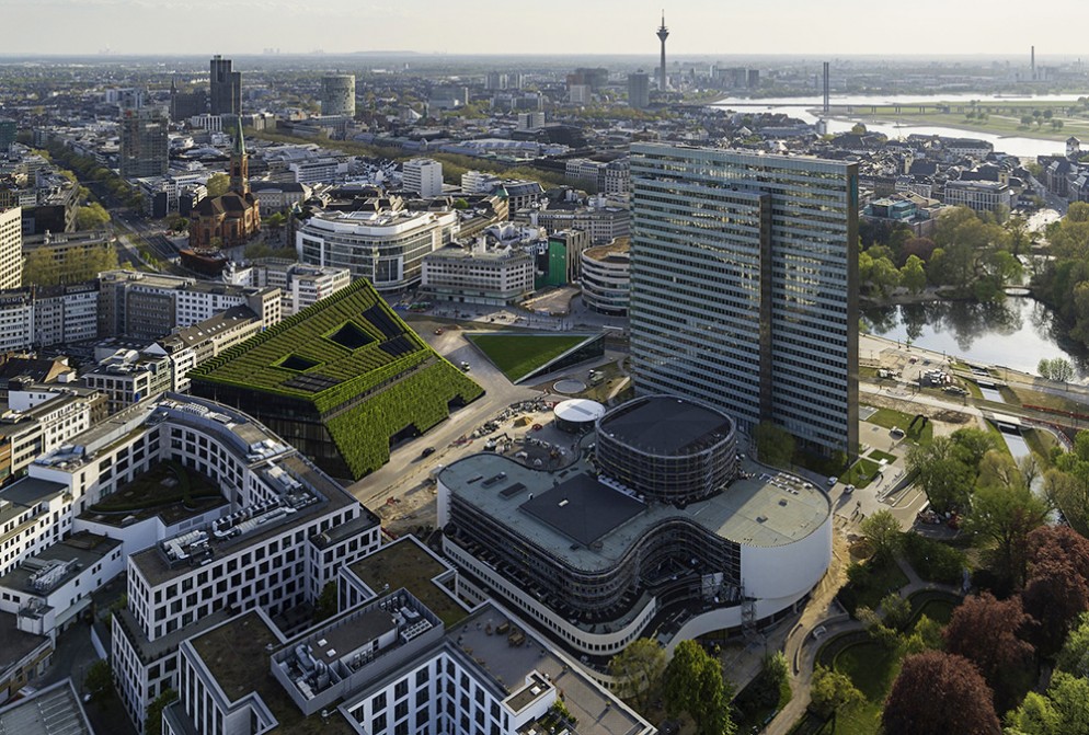 The complex of offices Kö Bogen II in Düsseldorf, which lies halfway between sustainable architecture and Land Art, is officially the building with the largest green facade in Europe. Kö Bogen II, which was designed by Ingenhoven Architects, marks the conclusion of the intervention to redefine the city centre of this German city; it is the joining link among the Hofgarten park, the austere tower Dreischeibenhaus and the elegant theatre Schauspielhaus and it is located not far from Kö Bogen I, by Daniel Libeskind, thus increasing the supply of business areas and offices.