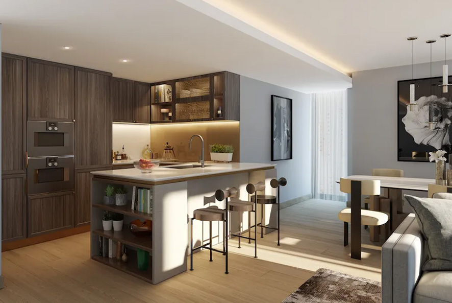 The complex is located in the heart of the exclusive Chelsea district, in London, a hot spot for those who love luxury and refined cuisine, thanks to its very wide range of boutiques and starred restaurants. Situated on the banks of the Thames, the power station Powerhouse is recognizable by its red brick structure, typical of turn-of-the-century British buildings, and consists of two glass towers, with 37 and 25 stories, and three buildings overlooking the river, connected by bridges. All around, parks and scenic routes offer a spectacular view of the old and new areas of London.
