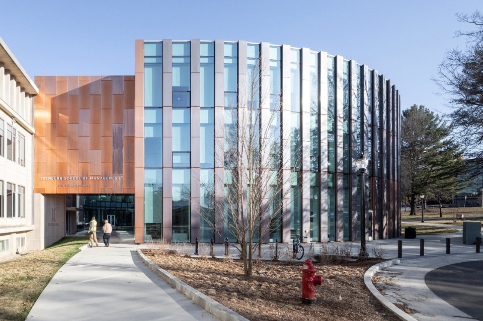 University of Massachusetts Amherst A circular extension made of copper and glass establishes a dialogue with the surrounding commercial buildings