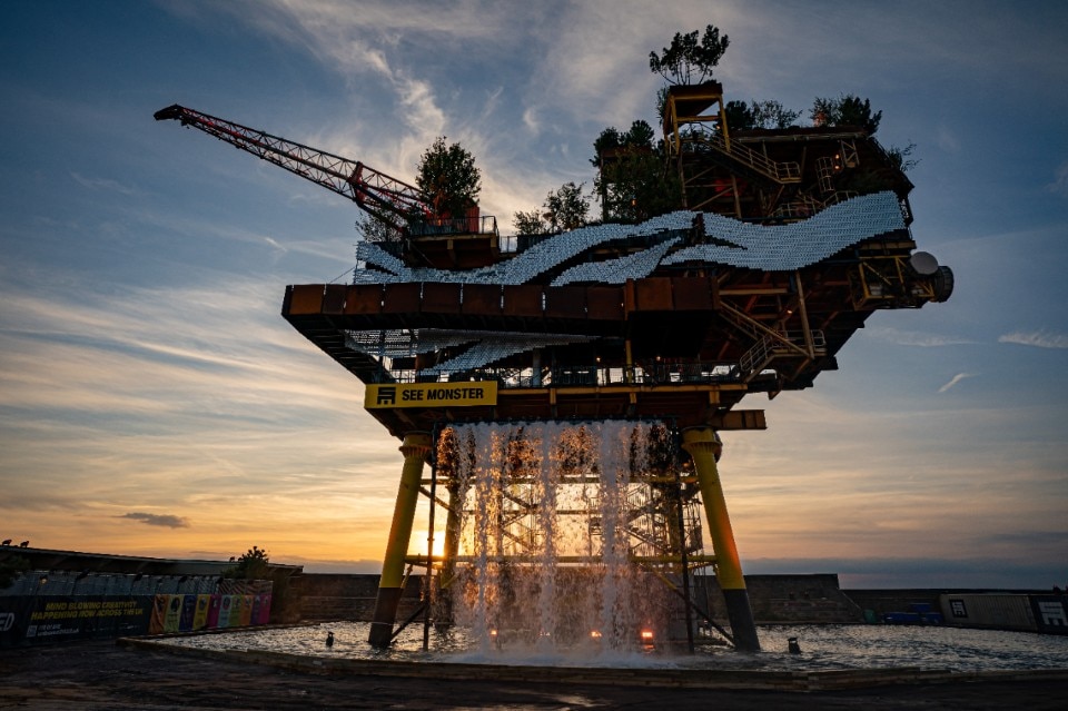 ENGLAND AN OIL RIG BECOMES A HUGE WORK OF ART