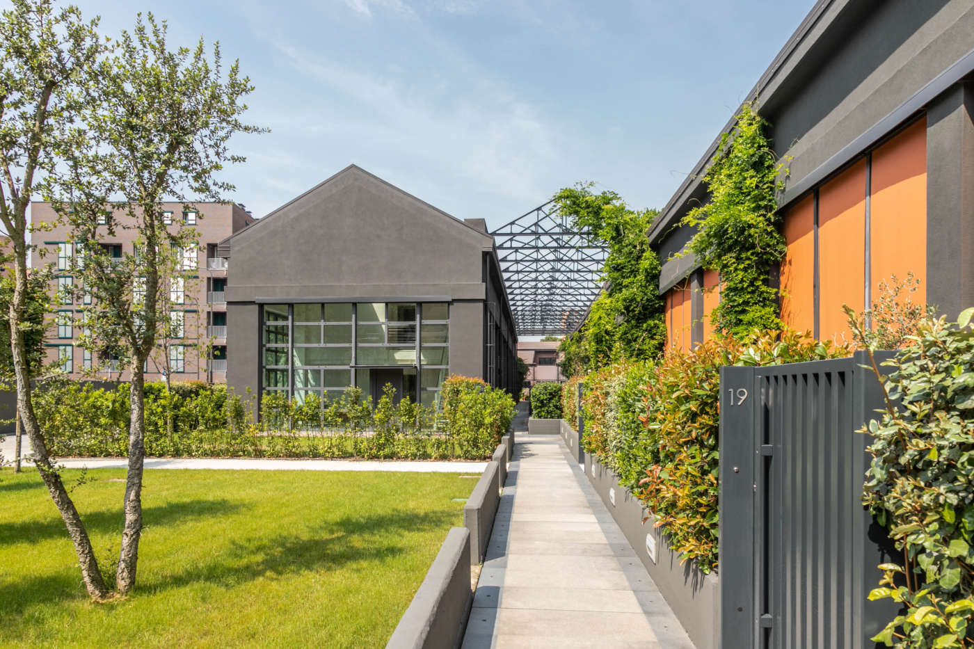 The set of 25 lofts in Via Columella constitutes an elegant residential complex, developed on the ground floor and mezzanine level, with volumes of different sizes and all provided with private gardens, both with internal patio and external garden, while four flats are provided with loggias overlooking the outside.
