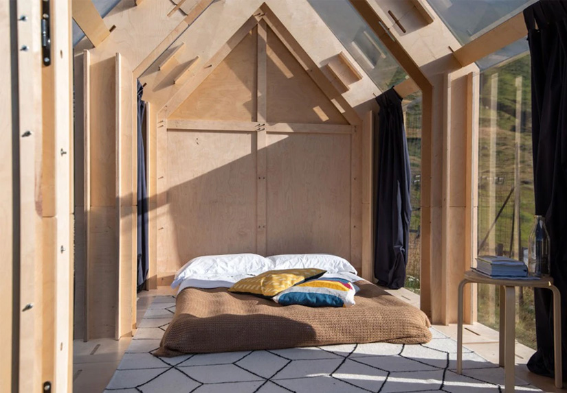 It is a temporary and contemporary shelter, a usual and surprising way to live in nature. An innovative, nomadic and design prefabricated model which can be easily assembled like a maxi Meccano. But, above all, it boasts the same environmental impact as a tent.