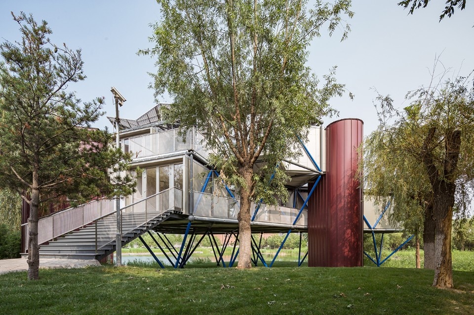 Lakeside Plugin Tower is a residential prototype designed by People’s Architecture Office (PAO) in collaboration with the Shenzhen Institute of Building Research for the new area of Xiong’an, 100 km south east of Beijing. The central government wanted to test a series of innovative and sustainable interventions as an alternative to concrete and to the gridlock of the capital.