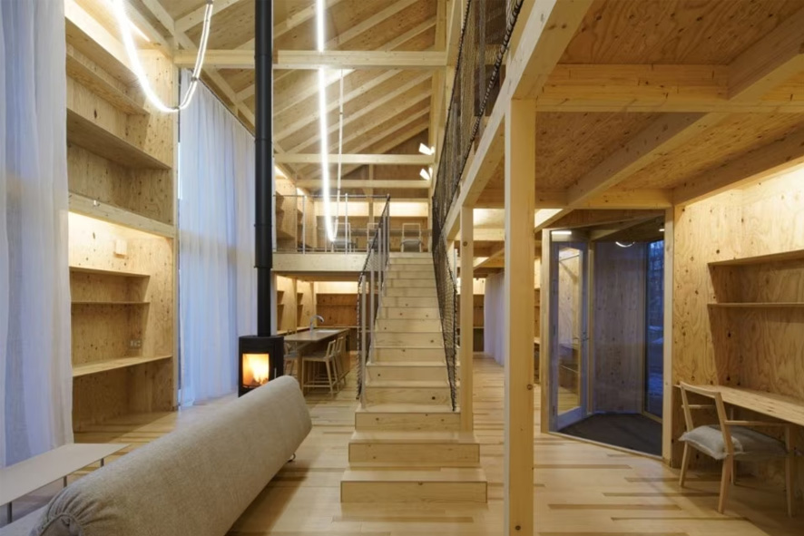 Higashikawa è famosa per la sua produzione di mobili in legno. Kengo Kuma and Associates ha quindi collaborato con queste fabbriche per dar forma allo spazio di lavoro: un gruppo di tre unità in legno locale con tetti spioventi. Ogni volume può ospitare fino a 12 persone e dispone di cucina, bagni, zona living e sala riunioni. Inoltre, il complesso è collegato alla vicina biblioteca comunale.