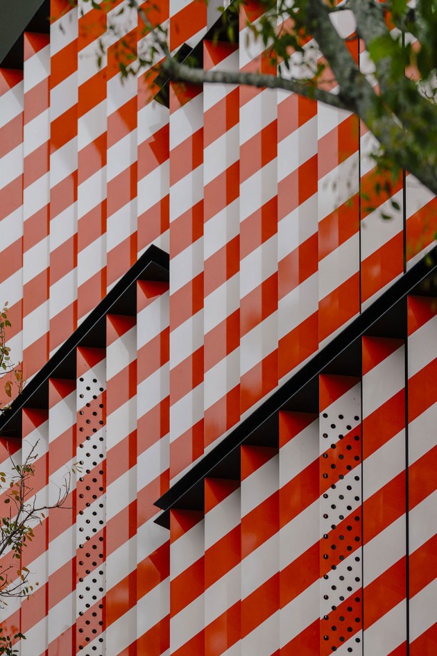 The short upper part of the building was entrusted to the New York studio Work AC, which thickened the façade in order to add a range of small public spaces which climb up to the roofing where an outdoor auditorium is located. Just around the corner, the big globular forms drawn by J. MAYER H. und Partner appear, made of metal mesh and with bright colours. The part in the middle, you go to the car park from, is entrusted to the French artist Nicolas Buffe and it is a stack of 3D printed figures which mix Manga ethics and a tribute to Baroque and to Rococo. The Spanish studio Clavel Arquitectos hangs 45 bodies of vaguely vintage vehicles painted in gold and silver suggesting a vertical traffic jam.
