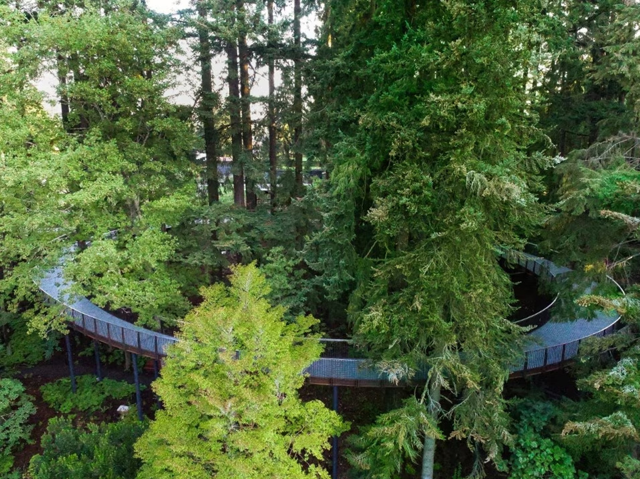 The botanical garden was founded almost a century ago by a local couple, John and Lilla Leach, who once lived in the estate. Now, after years of work, the area finally opens to the public with a pavilion for events, designed in collaboration with Olson Kundig Architects, and an aerial walkway through the trees.