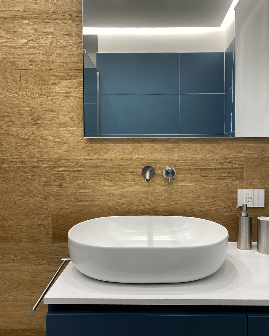 Il bagno si completa anche degli accessori Z316 come il bicchiere e il dispenser da appoggio, i porta salviette.